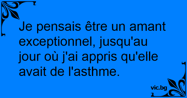 Je pensais être un amant exceptionnel, jusqu'au jour où j'ai appris qu'elle avait de l'asthme.