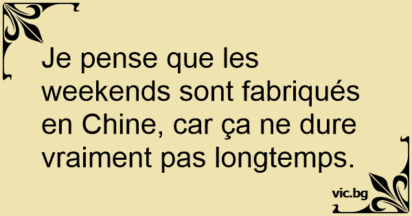 Je pense que les weekends sont fabriqués en Chine, car ça ne dure vraiment pas longtemps.