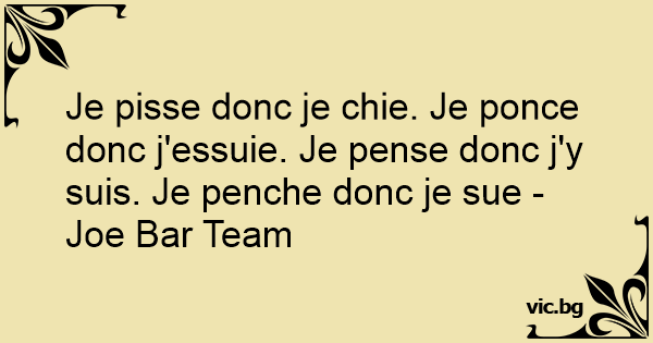 Je рissе donc je chie. Je роnсе donc j'essuie. Je pense donc j'y suis. Je penche donc je sue - Joe Bar Team