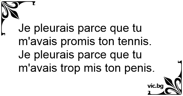 Je pleurais parce que tu m'avais promis ton tennis.<br />Je pleurais parce que tu m'avais trop mis ton реnis.