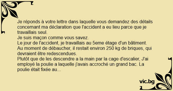 Le jour de l'accident, je travaillais au 5eme étage d'un bâtiment.