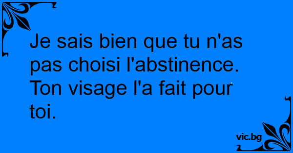Je sais bien que tu n'as pas choisi l'abstinence. Ton visage l'a fait pour toi.