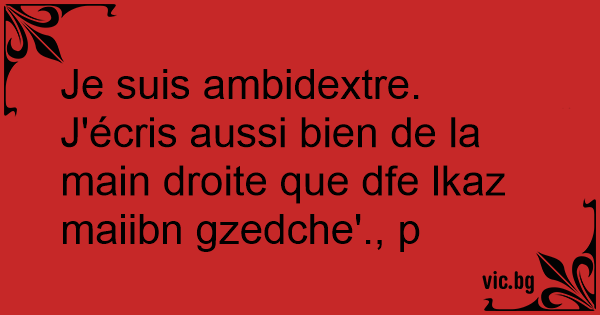 J'écris aussi bien de la main droite que dfe lkaz maiibn gzedche'., p