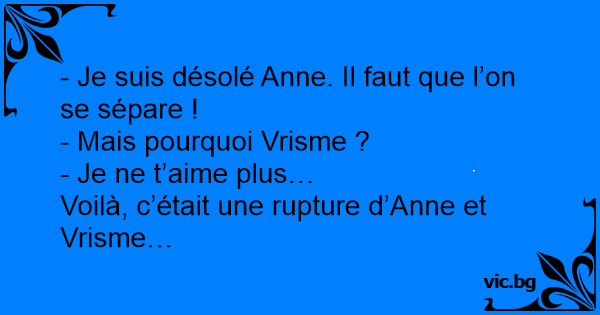 - Je suis désolé Anne. Il faut que l’on se sépare !