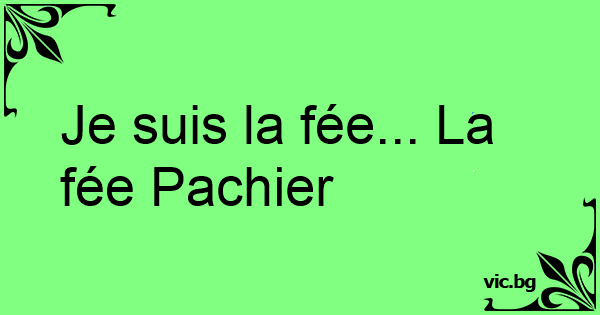 Je suis la fée... La fée Pachier