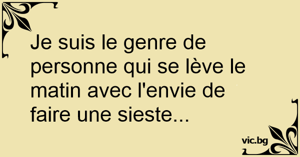 Je suis le genre de personne qui se lève le matin avec l'envie de faire une sieste...