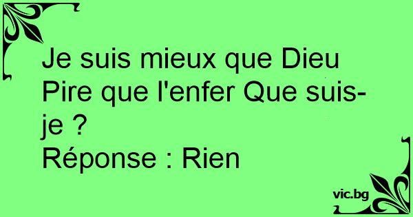 Je suis mieux que Dieu Pire que l'enfer Que suis-je ?