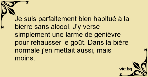 Je suis parfaitement bien habitué à la bierre sans alcool. J'y verse simplement une larme de genièvre pour rehausser le goût. Dans la bière normale j'en mettait aussi, mais moins.