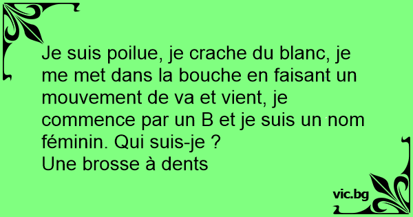 Je suis poilue, je crache du blanc, je me met dans la bouche en faisant un mouvement de va et vient, je commence par un B et je suis un nom féminin. Qui suis-je ?