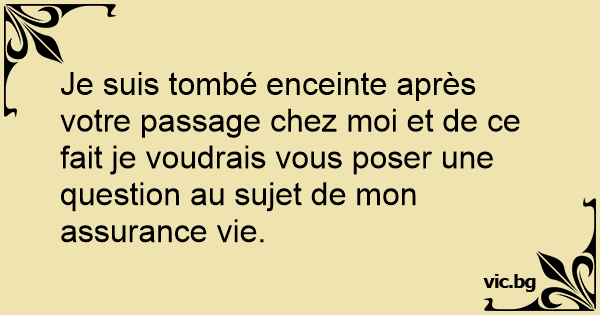 Je suis tombé enceinte après votre passage chez moi et de ce fait je voudrais vous poser une question au sujet de mon assurance vie.