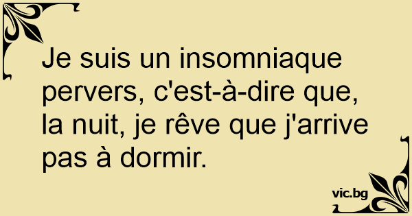 Je suis un insomniaque pervers, c'est-à-dire que, la nuit, je rêve que j'arrive pas à dormir.