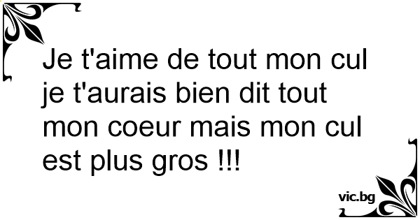 Je t'aime de tout mon cul je t'aurais bien dit tout mon coeur mais mon cul est plus gros !!!
