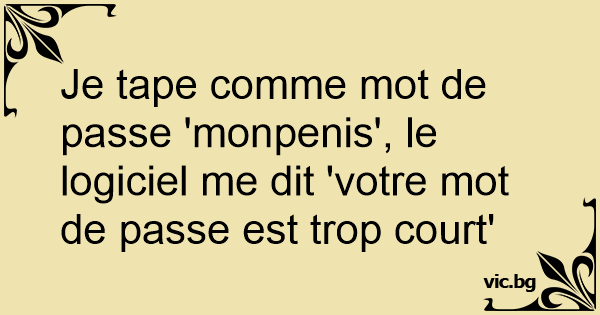 Je tape comme mot de passe 'monpenis', le logiciel me dit 'votre mot de passe est trop court'