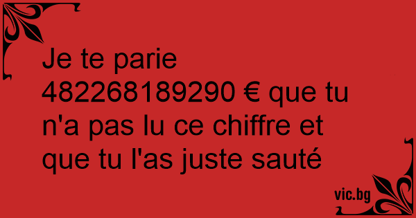 Je te parie 482268189290 € que tu n'a pas lu ce chiffre et que tu l'as juste sauté