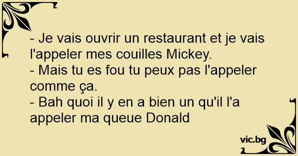 - Je vais ouvrir un restaurant et je vais l'appeler mes couilles Mickey.