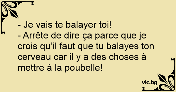 - Arrête de dire ça parce que je crois qu’il faut que tu balayes ton cerveau car il y a des choses à mettre à la poubelle!