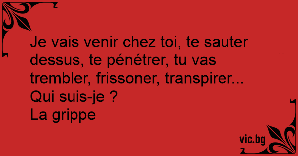 Je vais venir chez toi, te sauter dessus, te pénétrer, tu vas trembler, frissoner, transpirer... Qui suis-je ?