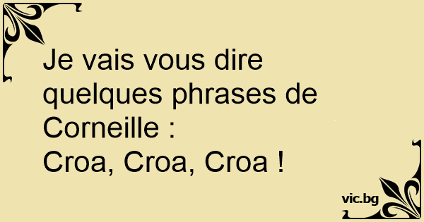 Je vais vous dire quelques phrases de Corneille :