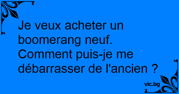 Je veux acheter un boomerang neuf. Comment puis-je me débarrasser de l'ancien ?