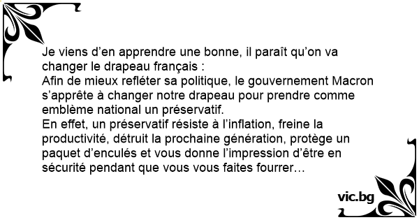 Afin de mieux refléter sa politique, le gouvernement Macron s’apprête à changer notre drapeau pour prendre comme emblème national un préservatif.