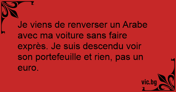 Je viens de renverser un Arabe avec ma voiture sans faire exprès. Je suis descendu voir son portefeuille et rien, pas un euro.