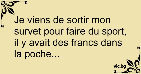 Je viens de sortir mon survet pour faire du sport, il y avait des francs dans la poche...