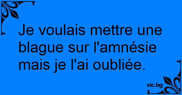 Je voulais mettre une blague sur l'amnésie mais je l'ai oubliée.