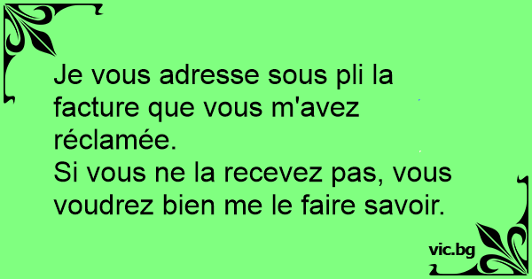 Je vous adresse sous pli la facture que vous m'avez réclamée.