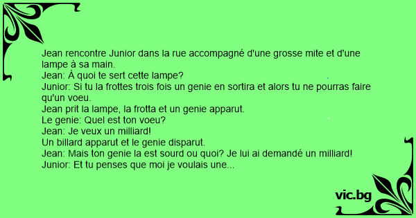 Jean: Mais ton genie la est sourd ou quoi? Je lui ai demandé un milliard!