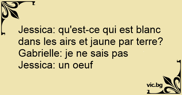 Jessica: qu'est-ce qui est blanc dans les airs et jaune par terre?