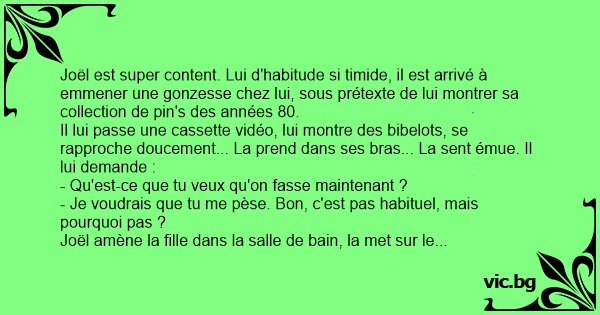 Joël est super content. Lui d'habitude si timide, il est arrivé à emmener une gonzesse chez lui, sous prétexte de lui montrer sa collection de pin's des années 80.