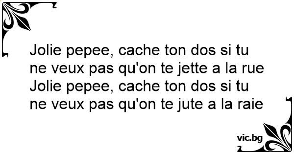 Jolie pepee, cache ton dos si tu ne veux pas qu'on te jette a la rue