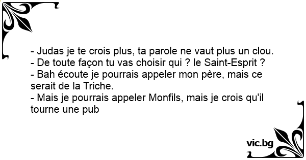 - Judаs je te crois plus, ta parole ne vaut plus un clou.