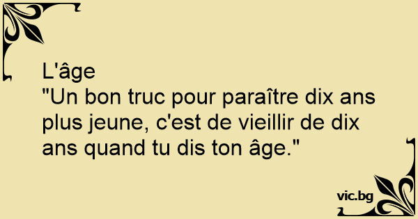 "Un bon truc pour paraître dix ans plus jeune, c'est de vieillir de dix ans quand tu dis ton âge."