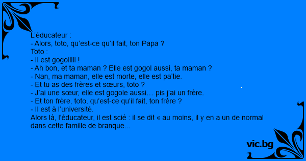 - Ah bon, et ta maman ? Elle est gogol aussi, ta maman ?