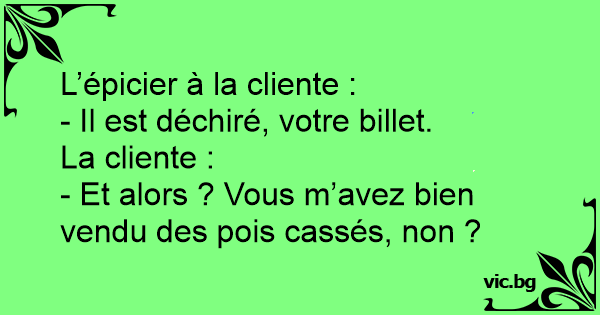 - Et alors ? Vous m’avez bien vendu des pois cassés, non ?