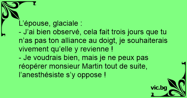 - Je voudrais bien, mais je ne peux pas réopérer monsieur Martin tout de suite, l’anesthésiste s’y oppose !