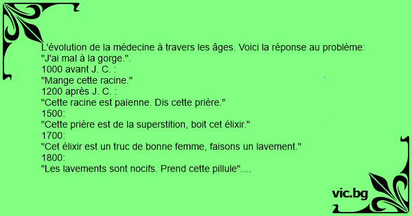 L'évolution de la médecine à travers les âges. Voici la réponse au problème: