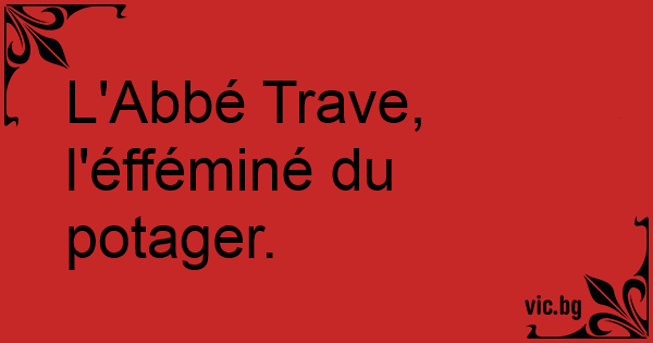 L'Abbé Trave, l'éfféminé du potager.
