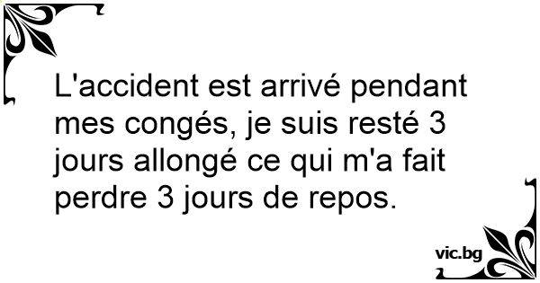 L'accident est arrivé pendant mes congés, je suis resté 3 jours allongé ce qui m'a fait perdre 3 jours de repos.