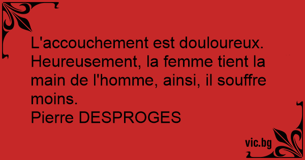 L'accouchement est douloureux. Heureusement, la femme tient la main de l'homme, ainsi, il souffre moins. Pierre DESPROGES