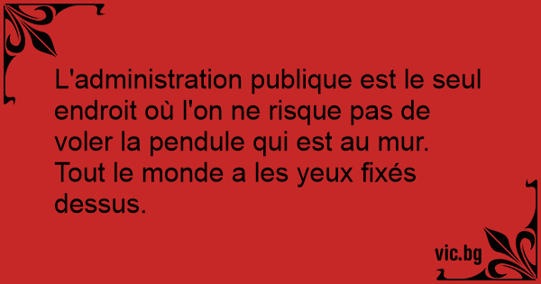 L'administration publique est le seul endroit où l'on ne risque pas de voler la pendule qui est au mur.