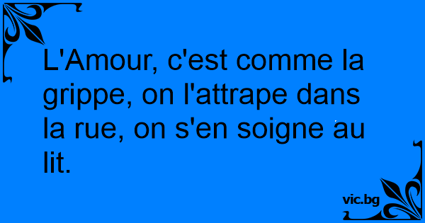 L'Amour, c'est comme la grippe, on l'attrape dans la rue, on s'en soigne au lit.