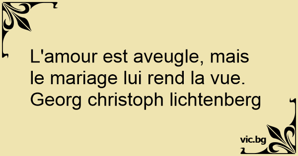 L'amour est aveugle, mais le mariage lui rend la vue.