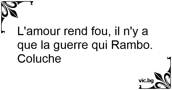L'amour rend fou, il n'y a que la guerre qui Rambo.