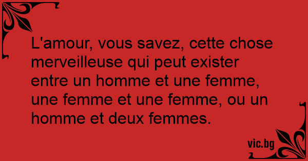 L'amour, vous savez, cette chose merveilleuse qui peut exister entre un homme et une femme, une femme et une femme, ou un homme et deux femmes.