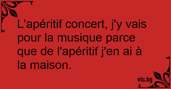 L'apéritif concert, j'y vais pour la musique parce que de l'apéritif j'en ai à la maison.