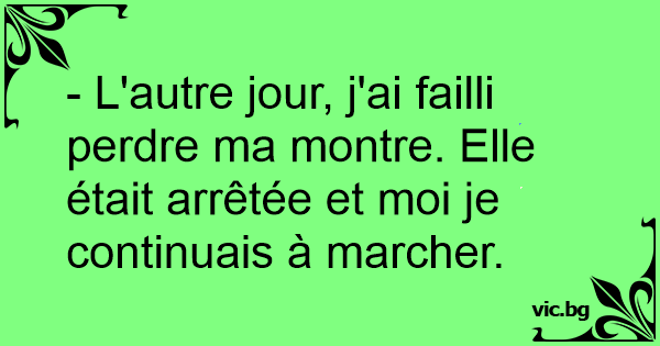 - L'autre jour, j'ai failli perdre ma montre. Elle était arrêtée et moi je continuais à marcher.