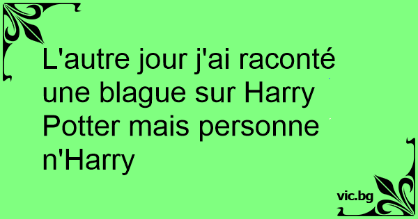 L'autre jour j'ai raconté une blague sur Harry Potter mais personne n'Harry