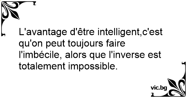 L'avantage d'être intelligent,c'est qu'on peut toujours faire l'imbécile, alors que l'inverse est totalement impossible.